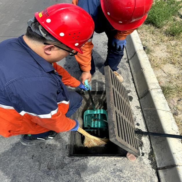 雨水井里,淤泥、落叶、杂物层层堆积,腐臭味扑面而来。但技术装备部的师傅们没有半分犹豫:套上劳保服、踩进泥泞中,铁锹挥得有力,污泥溅了满身也顾不上擦;遇到缠成一团的堵塞物,干脆徒手清理,污水顺着指尖流、泥渍沾满袖口,大家只笑着说“早点通了心里才踏实”。汗水混着雨水浸透衣衫,却挡不住他们抢时间、保畅通的脚步。