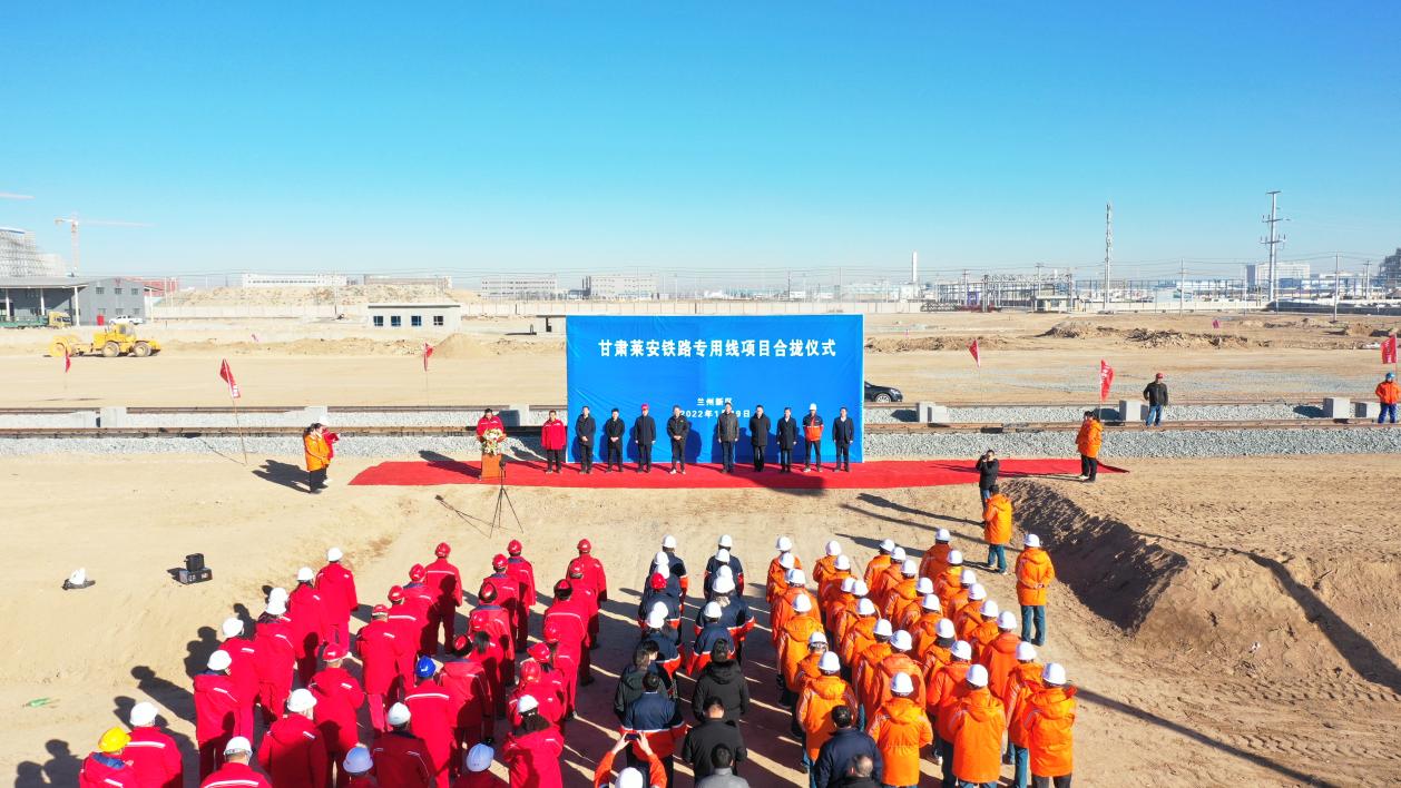 2022年1月19日上午10时,在化工物流园货场举行甘肃莱安铁路专用线项目合拢仪式。兰州新区Beat365唯一官方网站总经理姜锦、兰州新区商投集团总经理王坚民及中铁二十一局、甘肃莱安能源Beat365唯一官方网站领导出席仪式。