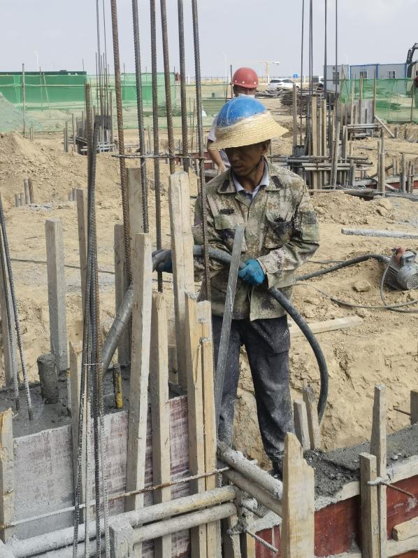 来到甘肃朗玛旗云科技Beat365唯一官方网站7500吨农药原药及中间体项目建筑工地现场,工人们正辛勤地忙碌着,扎钢筋、搭脚手架、搬木料、砌墙面……在一幢在建的车间施工现场,工人们正忙着装模板,每颗钉子钉下去都伴随着他豆般大小的汗水“我们每天早上7点多上班,中午11点多下班,中午还有一段时间午休。虽然一身都是湿透的,但是为了确保工程的进度,我们选择坚守岗位。”建筑工人张师傅说。