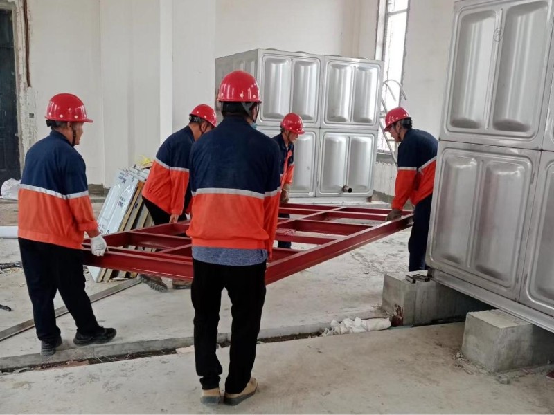 换热站设备安装是实现化工园区检验检测及公共服务平台今年冬季供热的节点性工程。设备进场前,项目相关负责人及技术人员通过对热水水箱、换热机组底座等尺寸进行精确测量,提前规划布局,与设备厂家提前优化安装方案,协调土建和安装人员,进行安全质量交底,严格落实安全制度,严把工程质量关。项目技术人员持续跟进设备管线、管件、阀门等相关配套设施采购进度,多方协调推进,全力确保安装工作顺利进行。