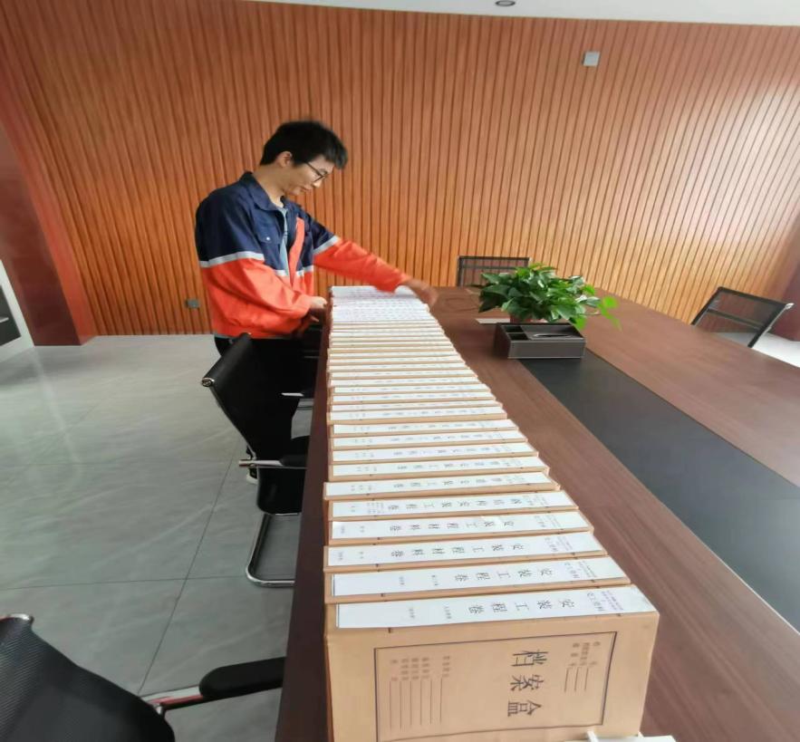 组卷过程中所有人员分工明确、责任到人,历时一周时间大家齐心协力最终高标准完成电气、自控、设备、管道、结构、防腐绝热,施工过程和交工技术文件资料共计53册。经监理单位检查验收合格后组织施工单位移交建设单位存档。