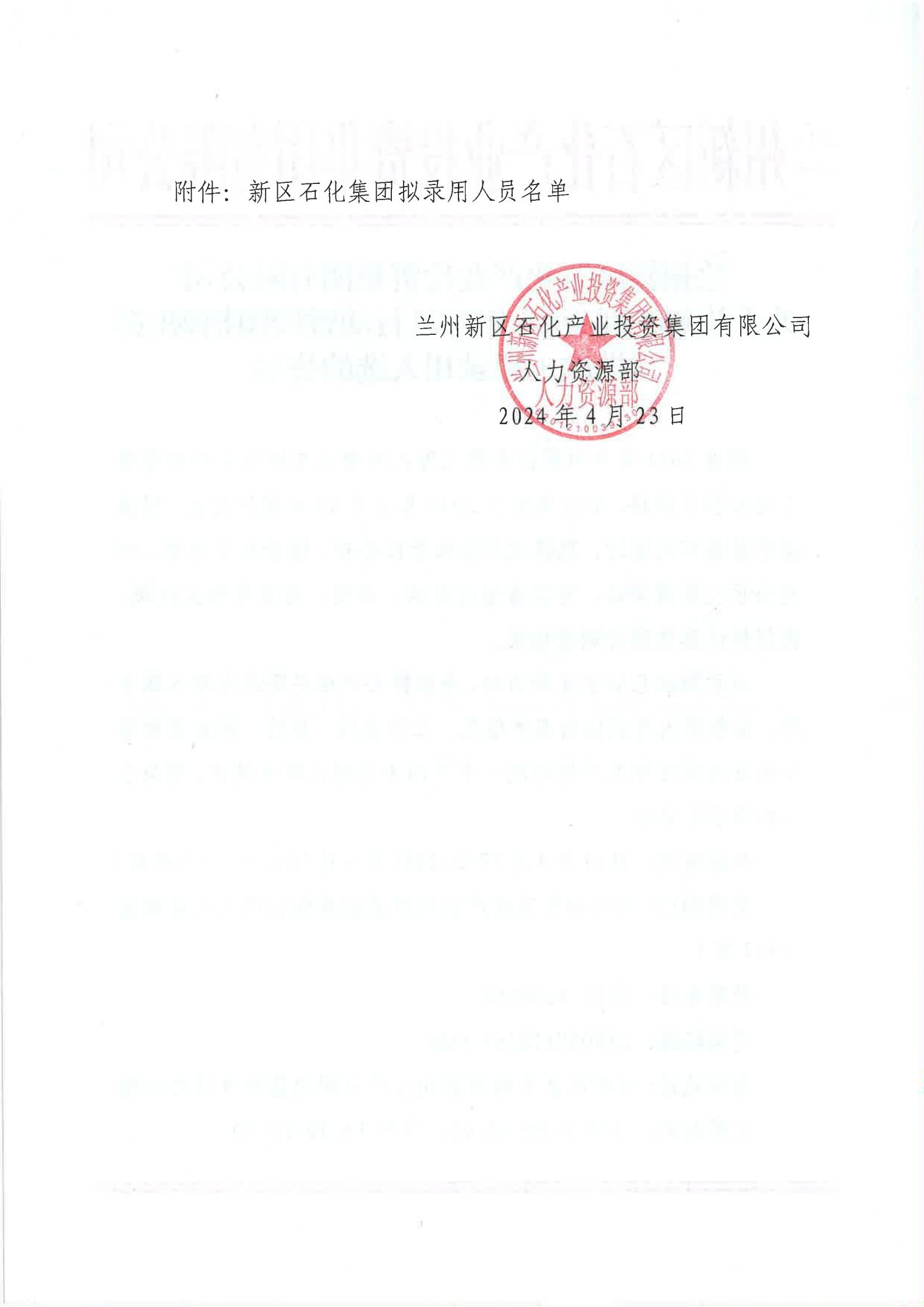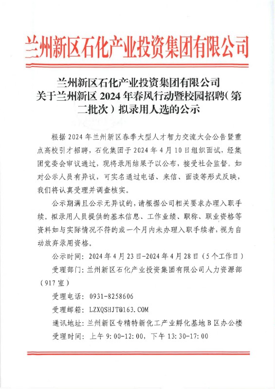 Beat365唯一官方网站 关于兰州新区2024年春风行动暨校园招聘(第二批次)拟录用人选的公示