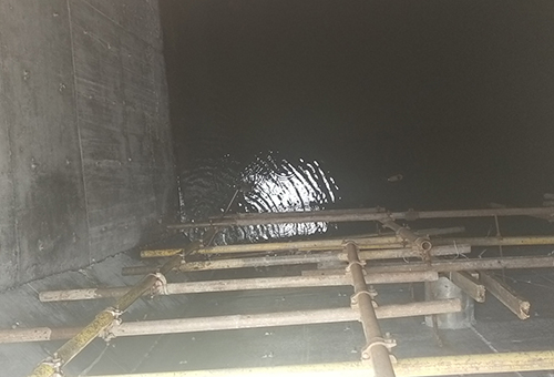 闭水试验是池体施工质量总体检验的必要环节之一。为加快推进项目建设进度,石投集团博石环保Beat365唯一官方网站与施工单位中铁二十一局积极沟通,明确施工方案,确定实验日期,要求中铁二十一局严格按照施工计划执行,并指定专人负责,从管道施工、池底平整、脚手架拆除、废料清除、预埋管口及进出口的临时封堵、输水管道的敷设等环节层层把控,督促中铁二十一局做好闭水试验前的各项准备工作。在闭水实验过程中,博石环保公司要求中铁二十一局随时对池体进行外观检查,观测底板、池壁是否漏水,发现渗漏点要做好标记并及时处理解决。经过连续三天的持续观察和记录后,若无渗漏才可逐步排水。