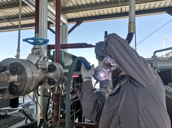 石投集团化学工程公司本着“急业主所急,想业主所想”的原则,作业人员相互协调配合,圆满完成一项又一项工作任务,相继高效完成了污水处理厂事故池抽水泵管道改造工程、兰州新区专精特新化工科技Beat365唯一官方网站液态太阳燃料合成甲醇装置两台隔膜压缩机进口缓冲罐更换及管线改造工程、电解水制氢车间防护栏制作安装等工程,为园区企业提供了优质高效的服务,为园区建设添砖加瓦,贡献自己的全部力量。