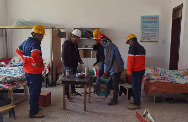 检查组对施工人数较多的康巴斯和污水厂项目开展详细安全隐患摸排,逐个宿舍开展检查,将宿舍内违规使用的大功率电器进行现场收缴,实地查看工人取暖设施,并检查宿舍内通风情况。对使用火炉取暖的宿舍要求设置通风口,并有专人值守;对使用电取暖的宿舍,严格杜绝使用大功率电器和假冒伪劣电热毯。