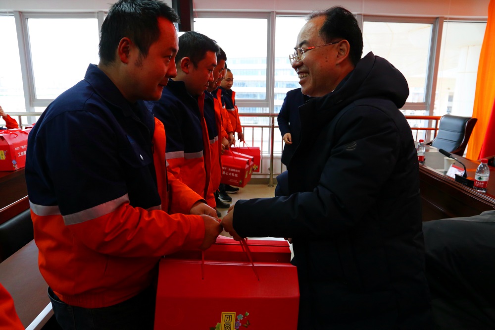 在慰问中,柴守强亲切慰问了优秀职工代表,并为他们送去了新春的祝福和节日慰问品。同时,对集团职工坚守岗位、无私奉献,舍小家为大家,加快化工园区建设的精神表示肯定,对他们付出的辛勤劳动和作出的贡献表示感谢,并细心询问了他们的工作和生活情况,向他们及其家人致以新春的问候和节日的祝福。