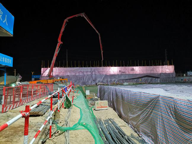 2021年1月,正值“三九”时节,天气相比往年更加寒冷,室外温度更是降到零下20℃左右,为保证冬期施工质量,在整体施工过程中搭设暖棚,棚内设置火盆进行保温。此时部分地区出现新冠疫情反弹,部分材料商停产停供放假,这也加大了施工难度。春节前夕大多工人准备回家过节,劳动力组织、材料协调极度困难。