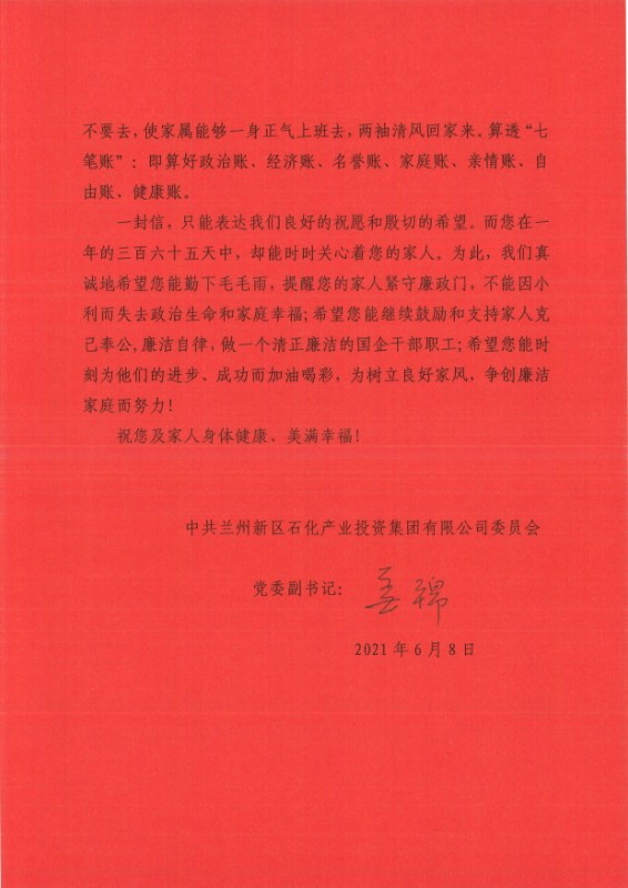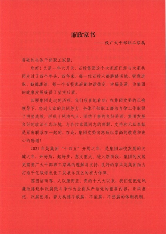 【廉政家书】致广大干部职工家属的一封信!