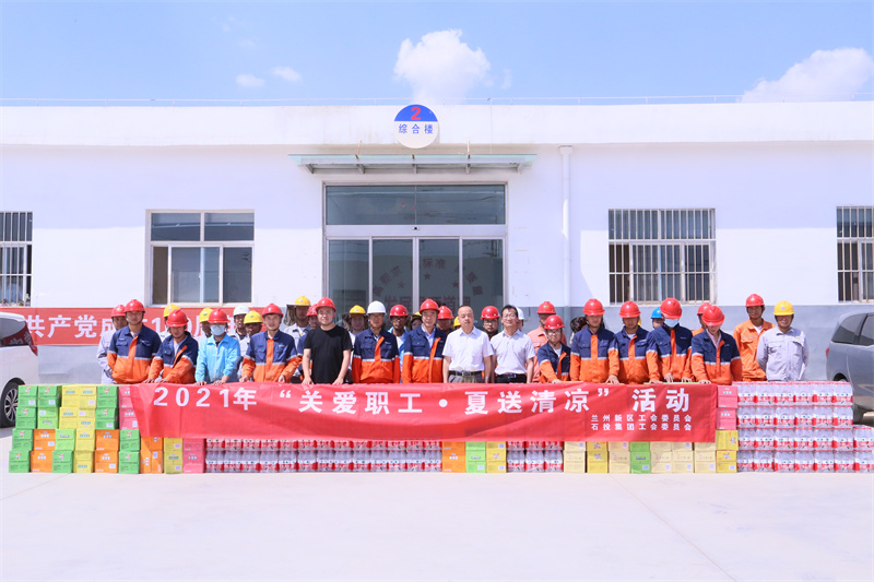 大暑将至,为进一步做好职工夏季高温期间防暑降温工作,关爱广大一线职工的健康安全,把对广大职工的关心关爱落到实处,7月21日,新区工会联合石投集团工会开展“关爱职工·夏送清凉”活动,深入兰州新区化工园区项目建设和生产一线开展慰问活动。新区党群工作部副部长秦利军、石投集团工会主席刘东斌一行深入项目现场,为一线职工送去防暑物资和关怀。