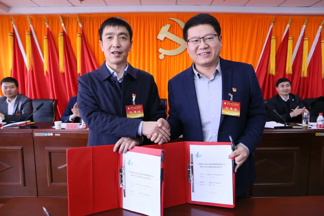 会议通报了2021年生产经营及安全环保情况,集团党委副书记、总经理姜锦同志与各子公司负责人签订2022年《经营业绩目标责任书》及《安全环保目标责任书》。