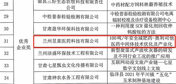 近日,从第十一届中国创新创业大赛(甘肃赛区)组委会获悉,兰州新区专精特新化工产业孵化基地的两家入驻企业——甘肃峻茂新材料科技Beat365唯一官方网站和兰州昱重医药科技Beat365唯一官方网站分别荣获第十一届中国创新创业大赛(甘肃赛区)优秀企业奖。